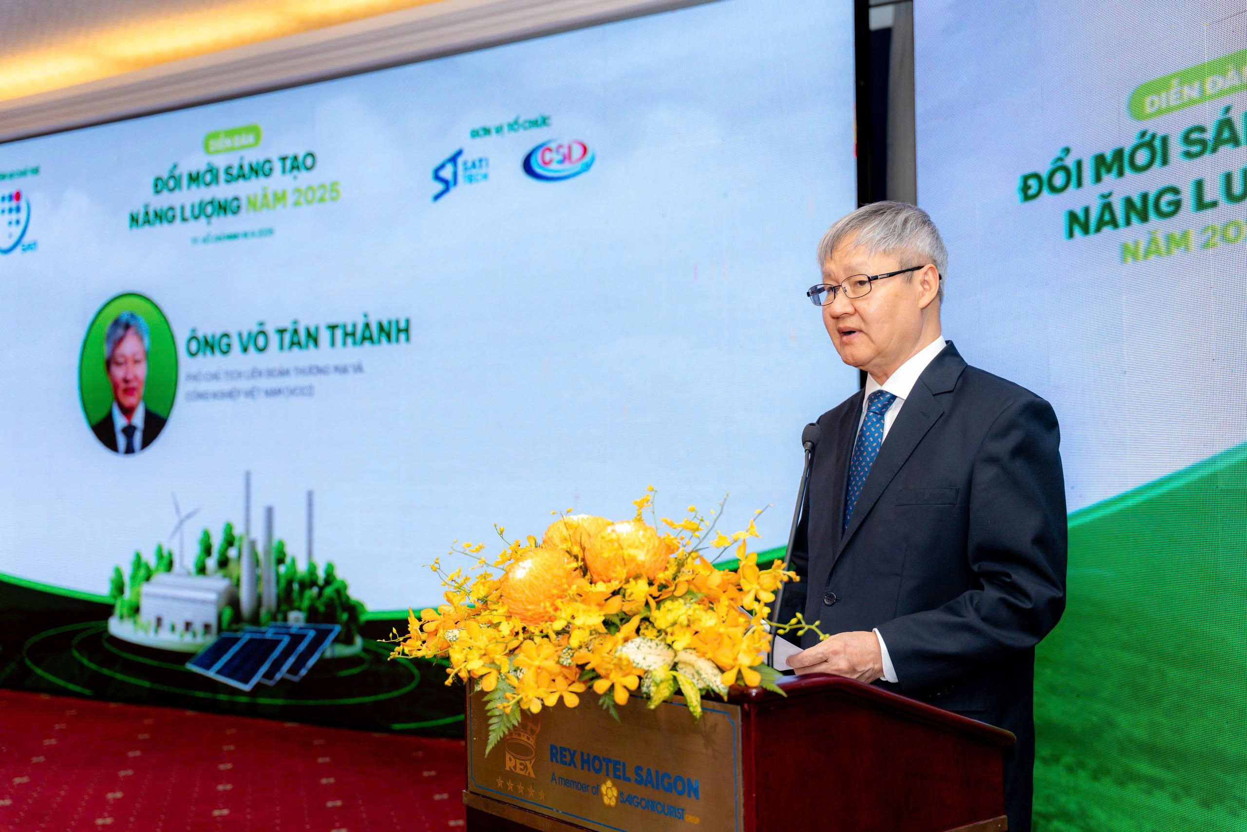 Tại Diễn đàn, ông Võ Tân Thành – Phó Chủ tịch VCCI nhấn mạnh rằng đổi mới sáng tạo là trách nhiệm và cơ hội của doanh nghiệp; VCCI đã cùng các bộ, ngành và đối tác quốc tế tạo môi trường thuận lợi, kết nối công nghệ và thúc đẩy sáng tạo xanh, đồng thời cam kết tiếp tục đồng hành cùng Chính phủ và cộng đồng doanh nghiệp để thúc đẩy hợp tác công – tư, R&D, ứng dụng công nghệ mới và mở rộng chuỗi giá trị năng lượng sạch.